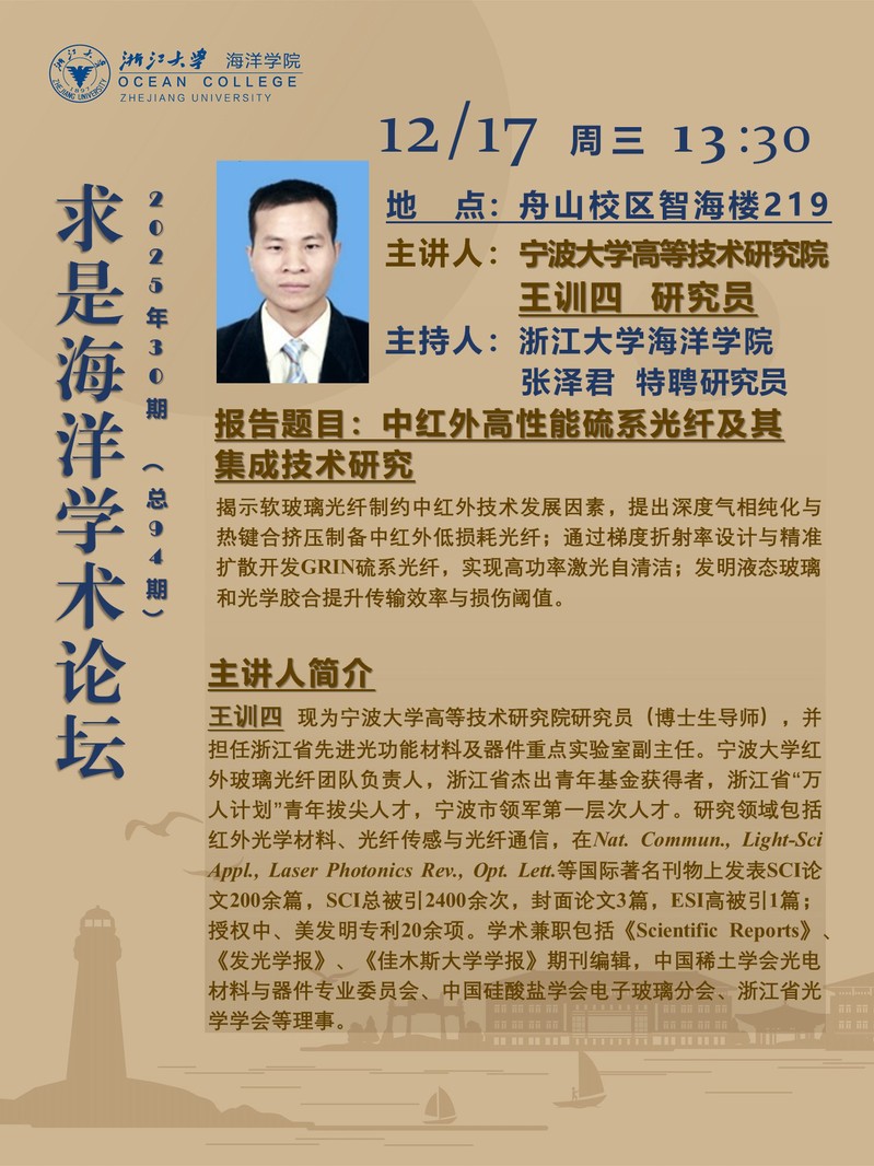 求是海洋学术论坛2025年30期(总94期)——中红外高性能硫系光纤及其集成技术研究