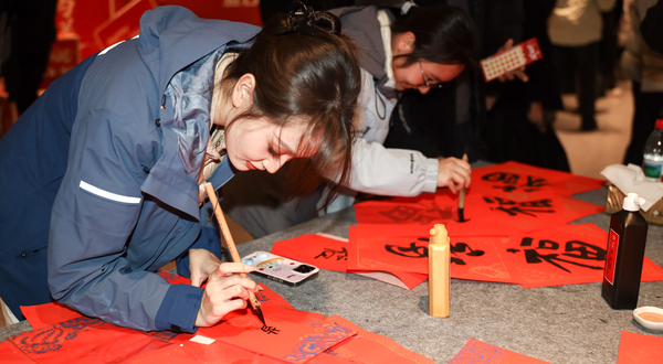 当天下午,暖冬游园活动率先举行。该活动由师生共同策划、组织,包括写对联、剪窗花、猜灯谜等蕴含传统文化的体验活动,跃马绕桩、驰羽击桶、灵驹投彩等趣味性十足的社团游戏,暖冬之声我来唱、VR游戏体验等颇具趣味性的互动节目,共近20项文化活动。师生们踊跃参与各自喜爱的项目,或写或画、或唱或跳,在欢快的沉浸式体验中,增进相互了解和情感联系,收获海洋大家庭的温暖和幸福。